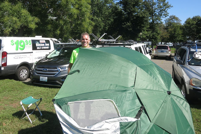 | As many of us unfortunates were to discover, John’s changing tent would have been a lot more effective without the peek-a-boo flap. |